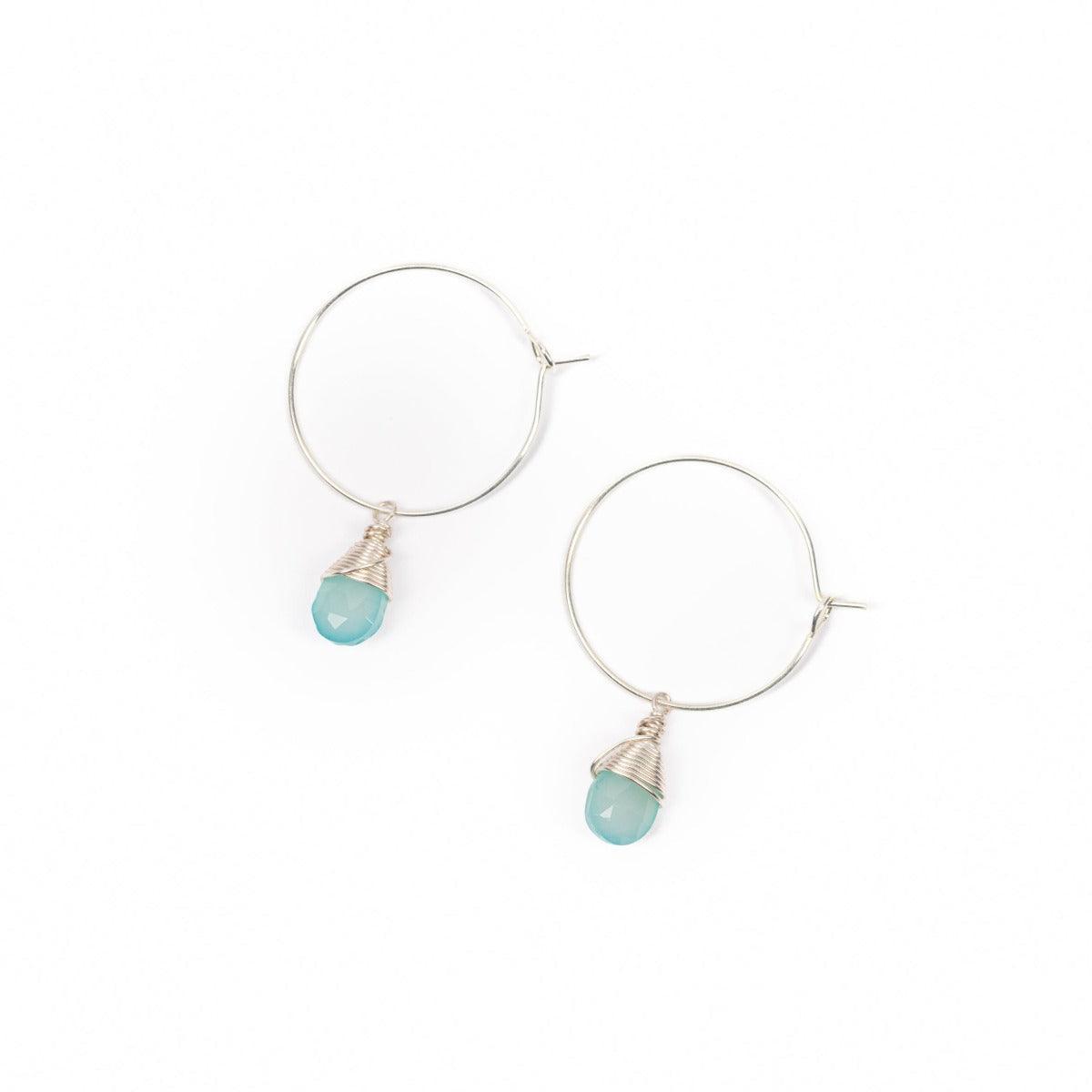 Aqua Chalcedony Hoop Earrings | Sterling Silver | Classic