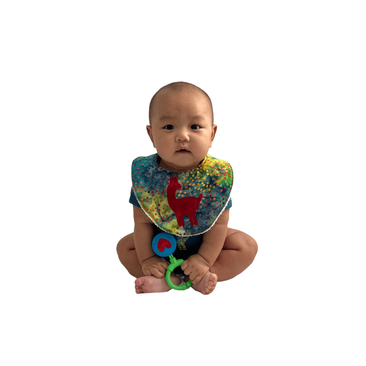 Keep your little one tidy and stylish with this 100% cotton handmade baby bib with a festive fiesta llama applique.
