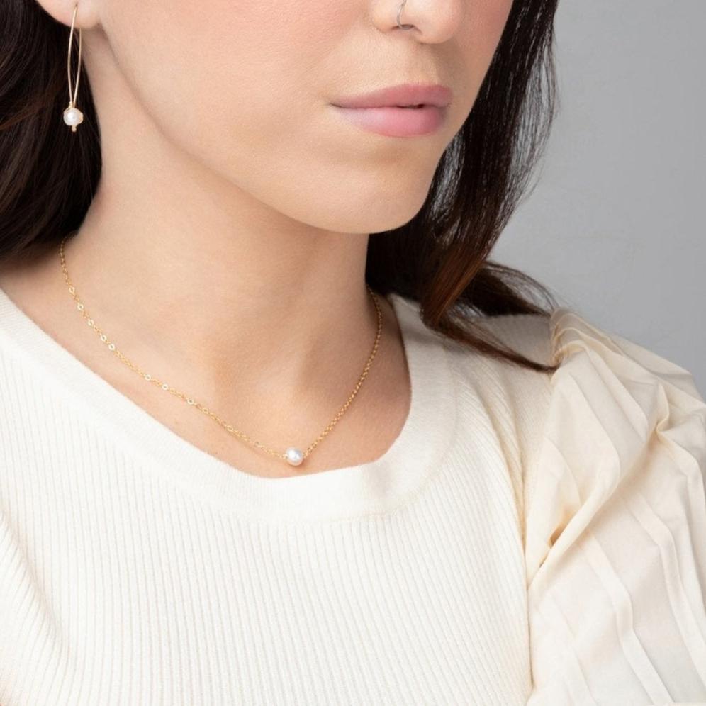 A dainty 14k gold filled necklace with a classic single freshwater pearl, the Leeda Pearl Necklace adds a touch of elegance to any outfit. Handmade with attention and detail.