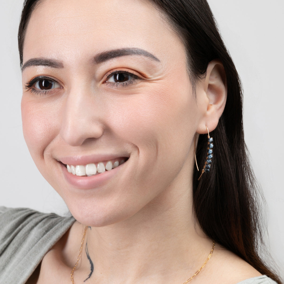 Mai Blue Beaded Threader Earrings | 14k Gold Filled | Modern